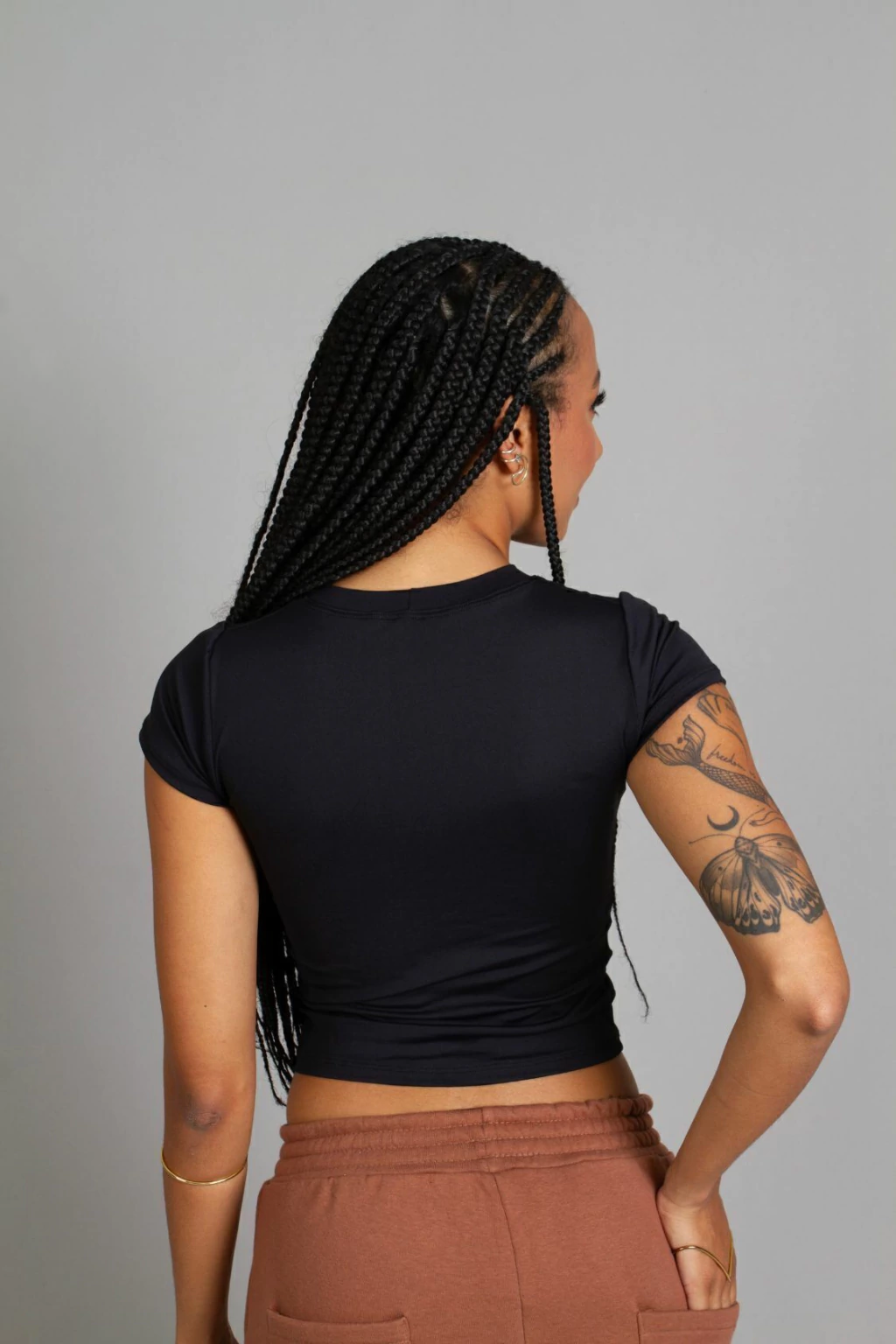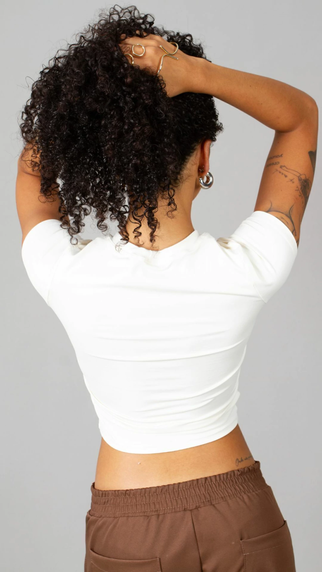 A Blusa Kali é a baby tee essencial para quem busca conforto e versatilidade no dia a dia. Com modelagem justa ao corpo, mangas curtas, gola careca e comprimento levemente alongado, ela se adapta a produções com cintura alta ou baixa, compondo desde looks casuais até produções mais elaboradas com facilidade. Confeccionada em poliamida de alta qualidade e tecido duplo, a peça oferece ótimo caimento, conforto e segurança, sem transparência. A elasticidade natural do tecido garante liberdade de movimento e um toque macio sobre a pele — ideal para usar o ano inteiro.