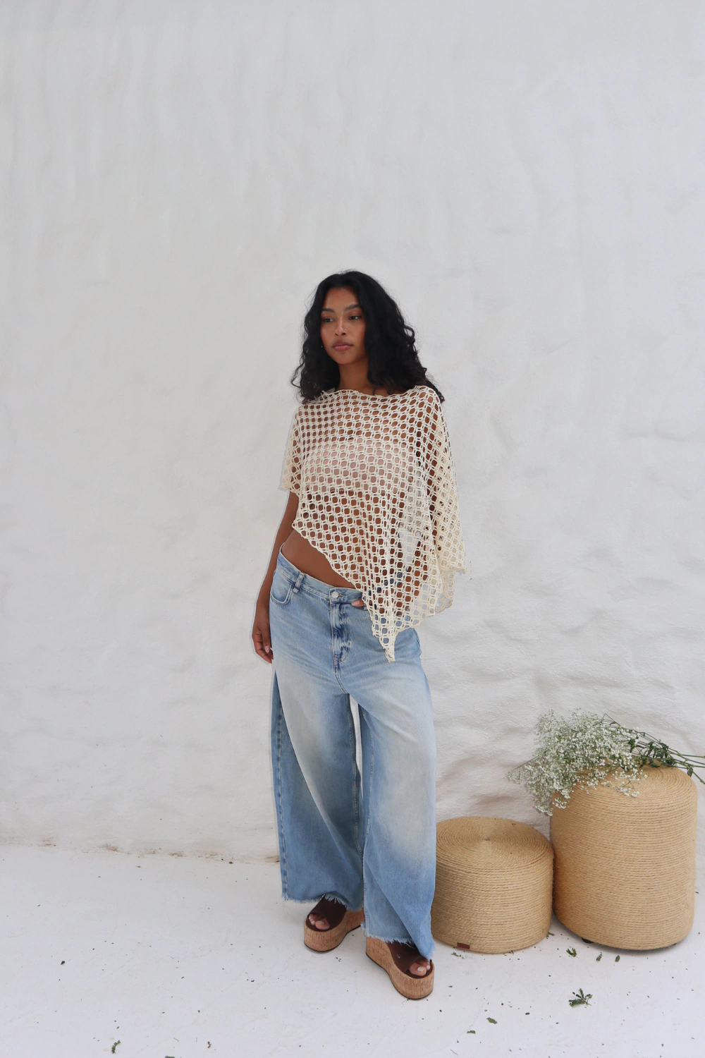 Seu design assimétrico, com recortes e transparência, conferem um toque de sofisticação para a Echarpe Mado, agora em macramê. Este modelo é extremamente confortável e fluido. Versátil e ousado, você pode montar looks com jeans, como saída de praia e o que sua criatividade permitir!
