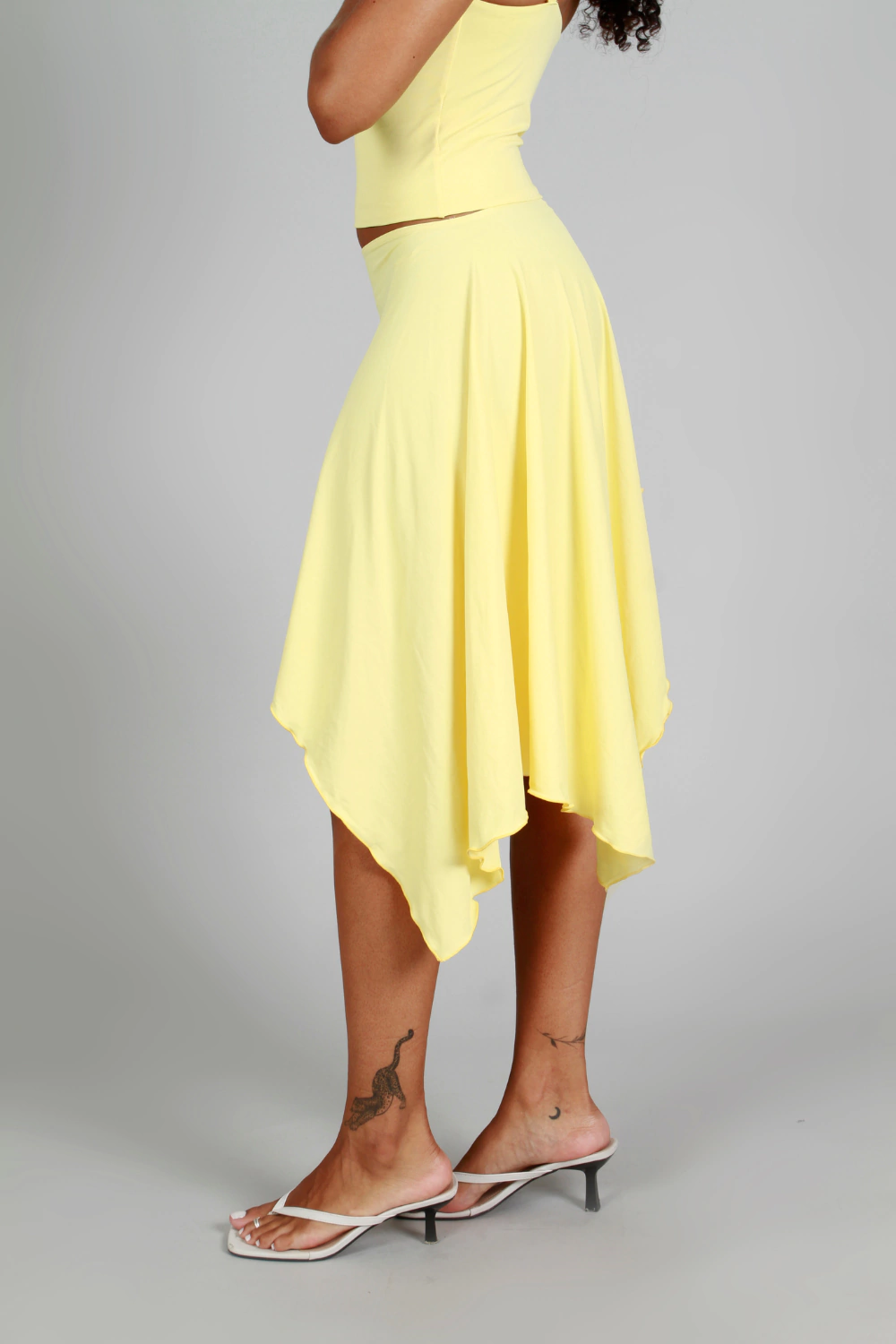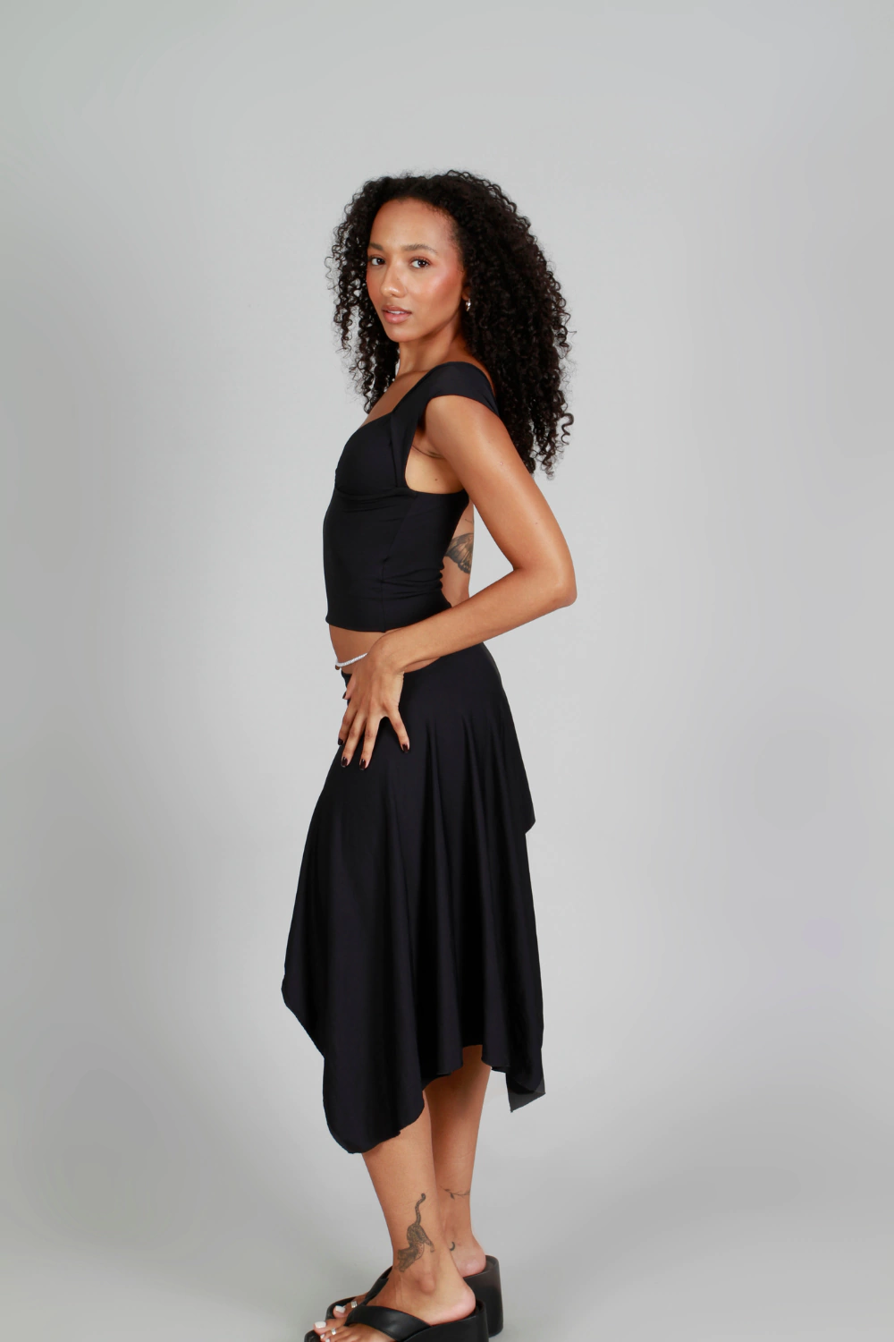 Com modelagem assimétrica e cintura com elástico, ela se adapta perfeitamente ao corpo e traz movimento natural ao caminhar. Confeccionada em tecido leve, fluido e fresco, é uma escolha essencial para os dias quentes de verão. O design minimalista permite combinações versáteis — do look casual com rasteira ao visual mais sofisticado com top e acessórios.