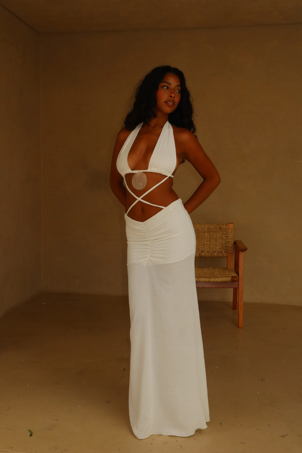 O Vestido Adhara é a escolha ideal para quem busca elegância, sofisticação e exclusividade. A "saia" possui modelagem "sereia", o top possui tecido duplo e ajustável. O detalhes na barriga é opcional, você pode optar por não cruzar e amarrar nas costas, ficando então um look de saia e cropped! Sim, você consegue usar de duas maneiras diferentes e a pedra é removível.Possui decote nas costas, deixando o visual ainda mais especial. Confeccionado em crepe leve e resistente, o vestido oferece excelente circulação de ar, toque suave e liberdade total de movimento. É daquelas peças que conquistam à primeira vista — e que vão te acompanhar por muitos verões.